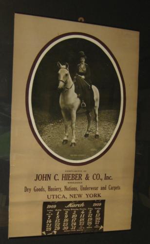 The advertising calendar is a very interesting piece. The J.C. Hieber company was a very successful dry good company and one of the largest in Upstate NY during the Erie Canal days. The original building still stands in downtown Utica and is on the National Register of Historic Places.