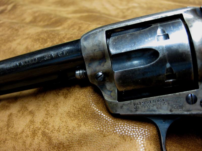 Original bright blue. Blue thinning on sides of barrels from holster wear. Strong original color case hardening. Scattered pinprick oxidation, not pitted. Screws are untouched with original fireblue. Original fireblue on trigger. The hard rubber grips are the nicest that I have ever seen…virtually no wear. (matching to the gun). The only fault on this gun is the cylinder pin has been marred by pliers…an easy replacement.