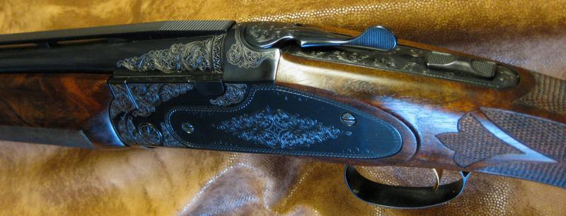 This 12ga Sporting gun was built for me personally with me specifying nearly all features of the gun in 1995. Having the privilege of knowing the Custom Shop employees personally the gun was treated to many personal touches in creating it. I was able to visit the plant often and took many detailed photos of the gun in the stages of custom shop finish work starting from the raw frame and incredible wood blanks which I hand selected. Intentions were to do a article for the Double Gun Journal featuring this fine American shotgun but time has gotten away from me but the picture album speaks for itself. This was the first time the gold inlayed “R” was used as an inlay on the bottom of the receiver. It was my design. I had to sign a release saying so.