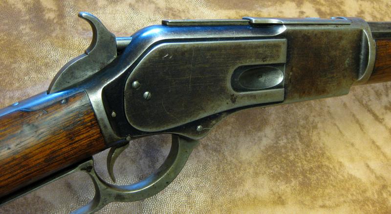 .45-75 caliber (only caliber offered that early in production) See fact sheet from Cody Winchester Museum which specifies “with lid” refering to the transition from the first open top model to this early sliding dustcover variation which is difficult to find.
