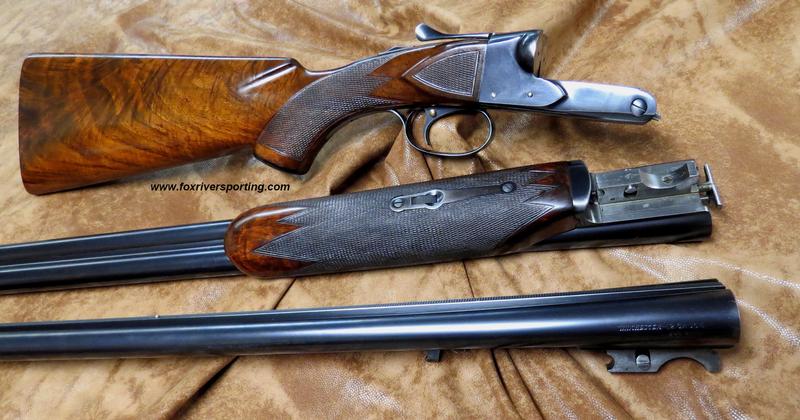 Gun retains most of it’s original factory blue on receiver & both barrel sets. Slight thinning of blue on bottom of receiver with very light handling marks both receiver & barrels. Clean, sharp screws. Gun is tight & operates crisply.